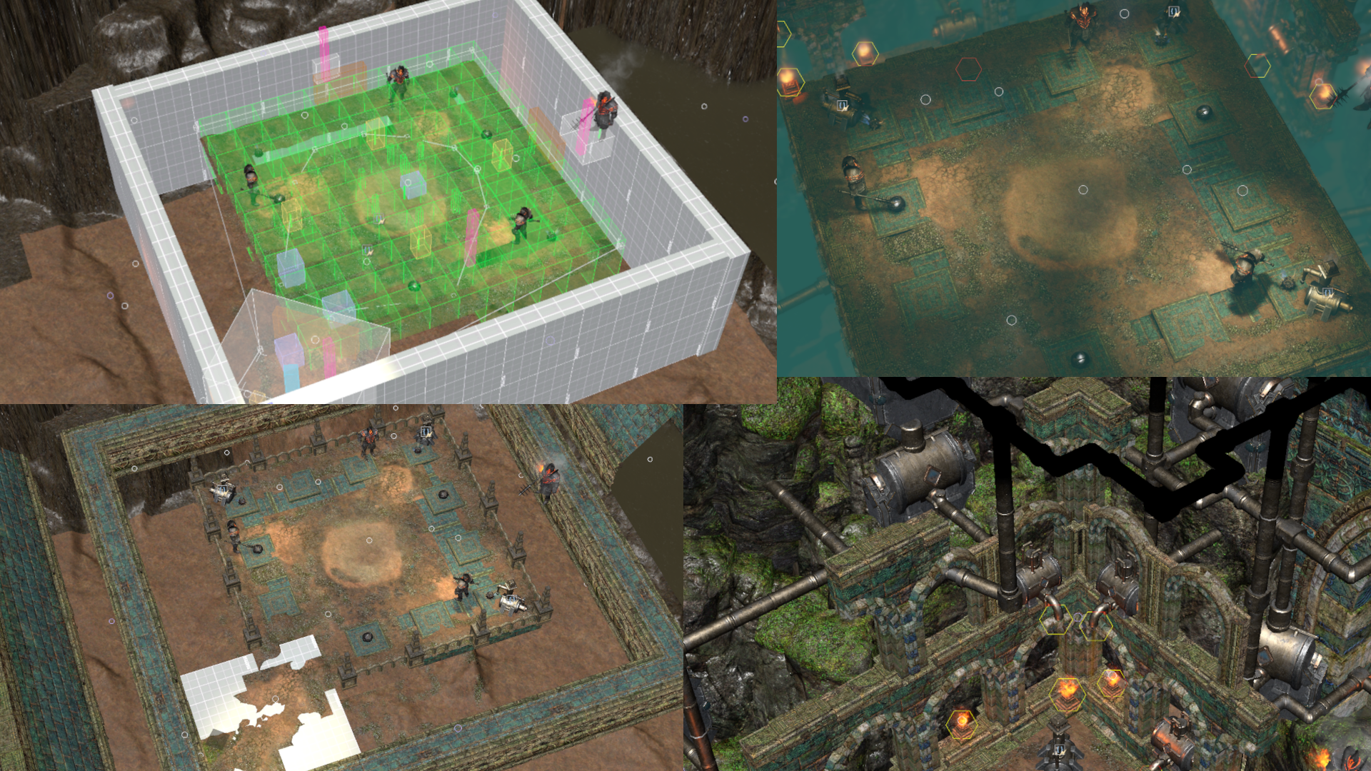 I pushed all detail outside the playable boundaries and relied on textures and flat wall assets to create visual depth. Floor patterns and wall murals provided variety without affecting navigation. Different elevation changes gave tactical options while keeping the space completely clear for movement.